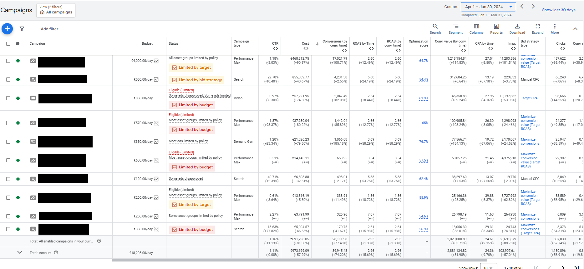 At the time, the account was organized with a “campaign per category” setup. The problem: even within a single category, products had very different AOVs, conversion rates, and NC-ROAS. So budgets were being spread too evenly and opportunities were getting buried. We decided to segment much more aggressively.